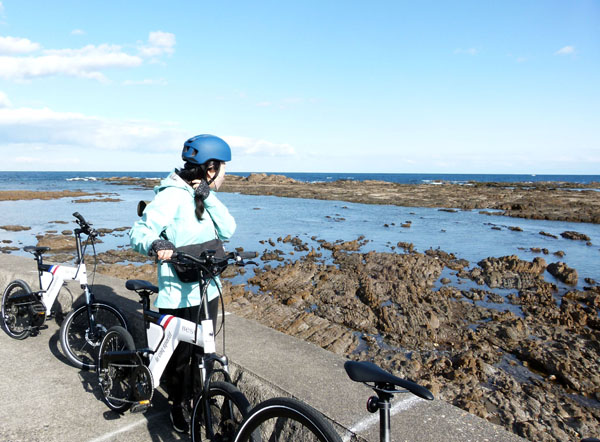 市内の名所をeバイクで(C)日刊ゲンダイ