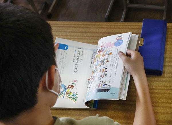 義務教育に「校正」を(配られた教科書を読む児童)/(C)共同通信社