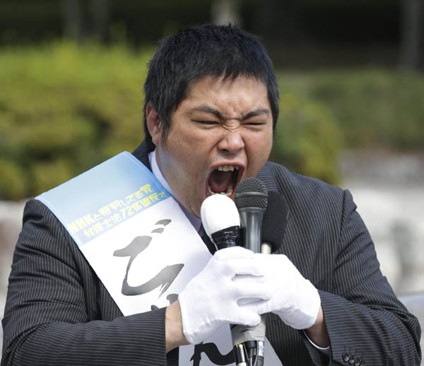 東京都豊島区議選に立候補したへずまりゅう氏(写真は2021年参院山口補選立候補時)/(C)共同通信社
