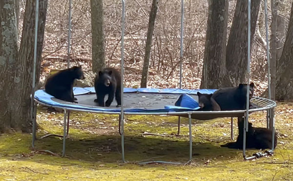 ヤバかわ! 米コネティカット州でクマ一家がトランポリン上でどすこい!?