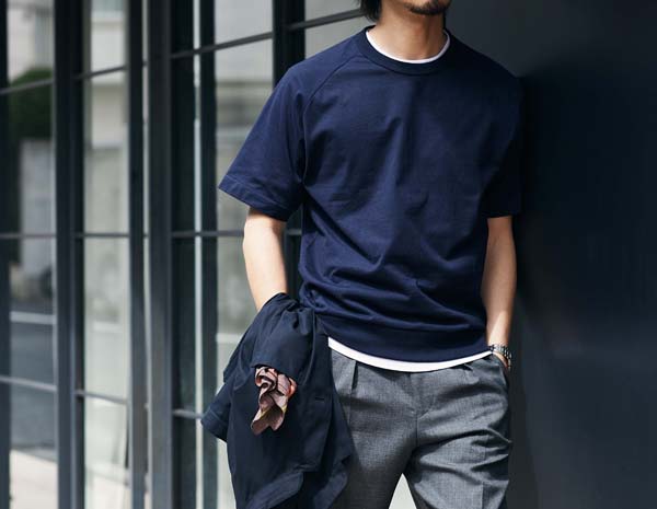 夏のTシャツは「重ね着」がマスト! 襟元チラリの白Tで清潔感と洒脱さをアピール