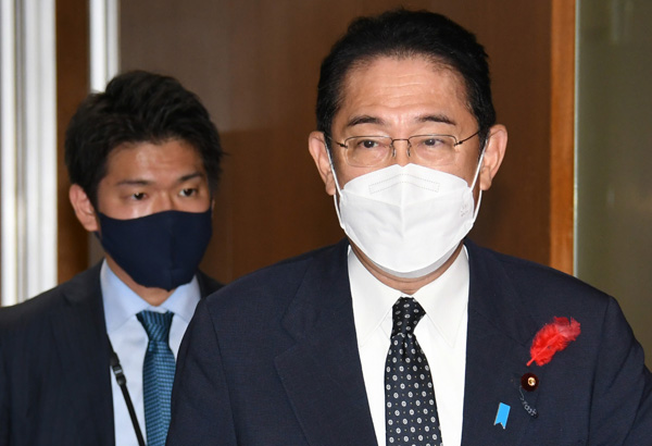 もれなく付いて回る(左が翔太郎秘書官)/(C)日刊ゲンダイ