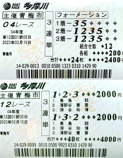 4レースと12レースの舟券(C)日刊ゲンダイ