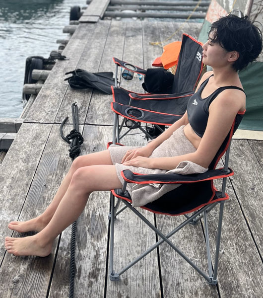 外気浴で脱力するイワタさん(提供写真)