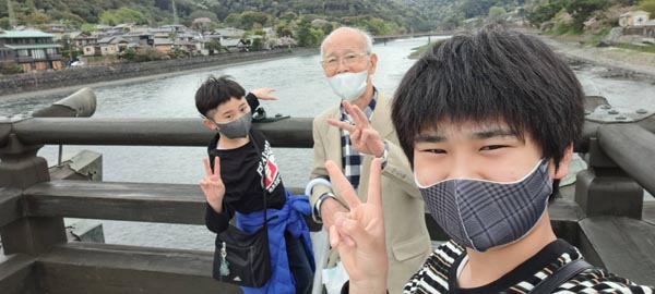 お孫さんと宇治橋でパチリ(提供写真)