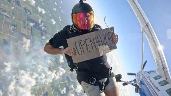 解雇された米クリエーターが“求職メッセージ”を手にスカイダイビングしたら…