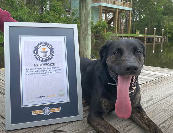 米ルイジアナ州で発見! 世界で最も舌が長~い犬「ゾーイ」は近所の人気者