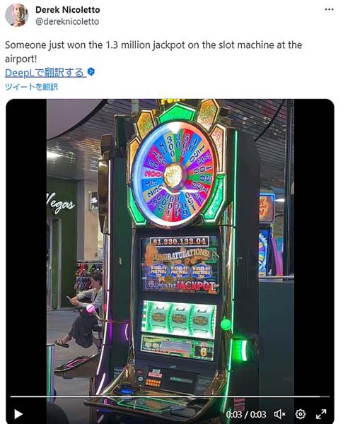 これぞラスベガス! 空港のスロットで前に使った人が当てていた衝撃の金額にびっくり