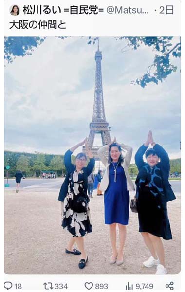 松川るい議員がエッフェル塔前で撮影したとされる写真(同議員のSNSから)
