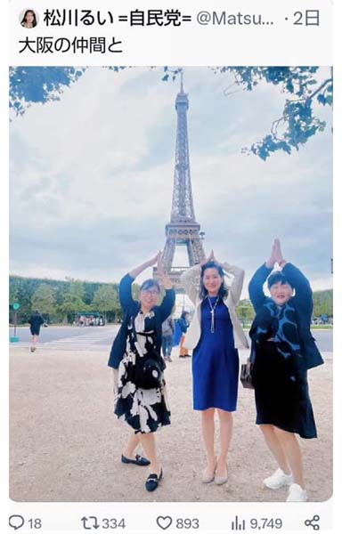 自民・松川るい氏の出世プランがパー…エッフェル塔写真居直り釈明、次女同行もバレて大炎上