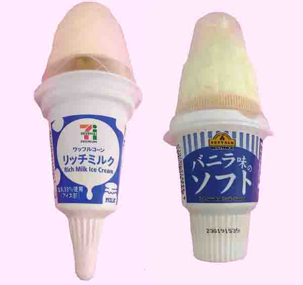 「ワッフルコーン リッチミルク」と「バニラ味のソフト」/(C)日刊ゲンダイ
