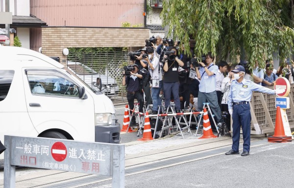 京都アニメーション放火殺人事件の初公判で、京都地裁周辺に集まった報道陣(C)共同通信社