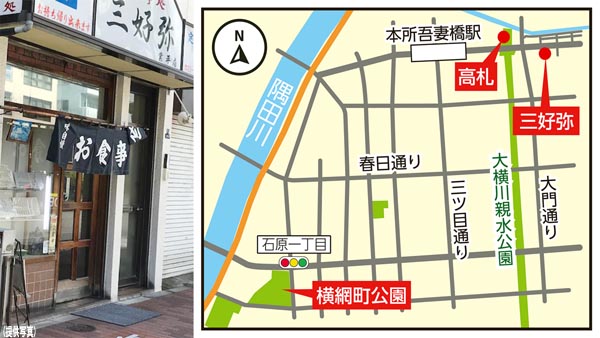 食堂「三好弥」(左)と本所吾妻橋駅周辺(C)日刊ゲンダイ