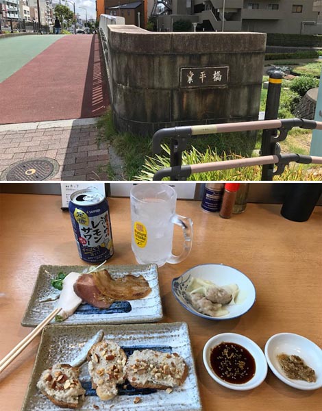 業平橋(上)と「麺屋木ノ下」でワンタンを肴に(C)日刊ゲンダイ