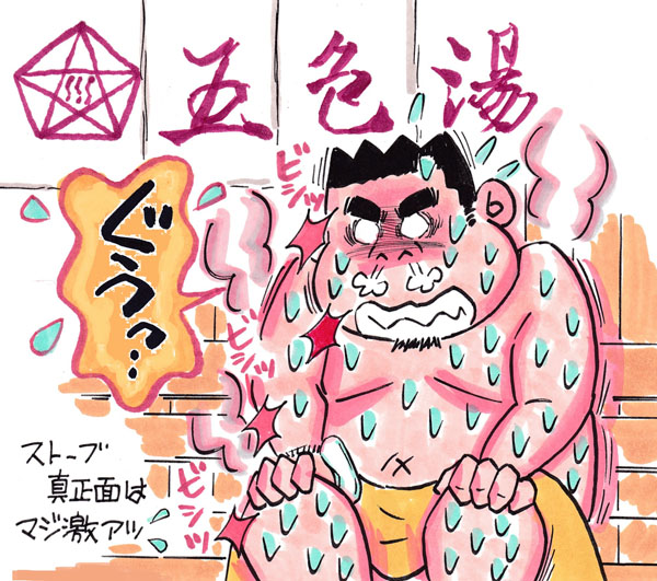 椎名町「五色湯」サウナは100度弱、ストーブ前の上段は熱波の嵐。わずか2分で大粒の汗が…