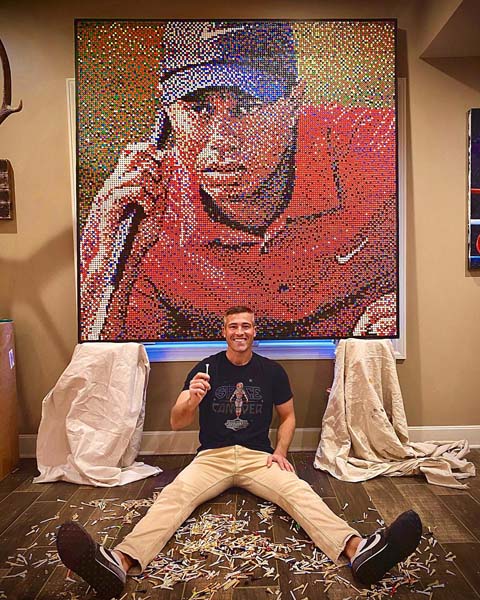 ただの肖像画と思ったら…ゴルフティー2.5万本で描かれたタイガー・ウッズ!