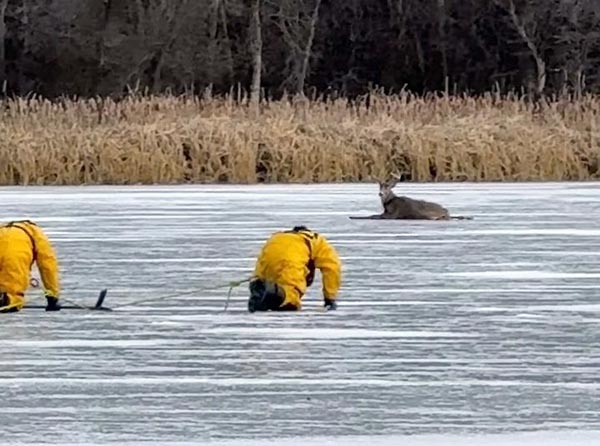 凍った湖で立ち往生するシカを救え! 米国で決死の救出劇が話題に