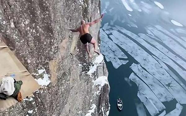 ノルウェーで快挙! 世界記録40.5メートルの絶壁から奇跡のダイブ