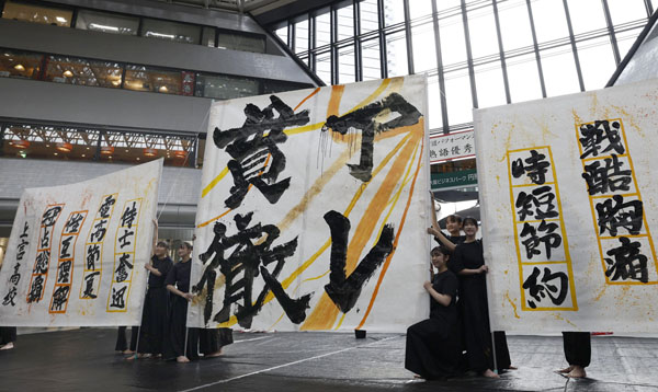 今年の「創作四字熟語」の最優秀作品に選ばれた「アレ貫徹」(中央)/(C)共同通信社