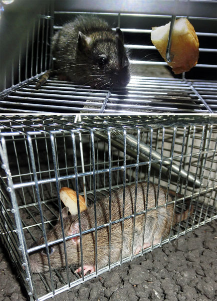 捕獲した小ねずみ(上)と大人のねずみ。大人は子ネコサイズだ(C)日刊ゲンダイ