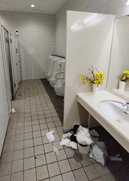 手洗い場も錯乱(「道の駅 輪島」の男性トイレ)(C)日刊ゲンダイ