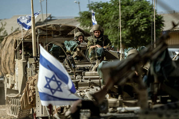 イスラエルとパレスチナ・ガザ国境近くで戦闘準備をするイスラエル軍兵士たち(C)Middle East Images/ABACA/共同通信イメージズ