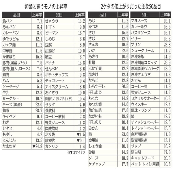 【50品目一覧表付き】2023年は「2ケタ値上がり」が目白押し! 頻繁に買うモノは6.2%アップ