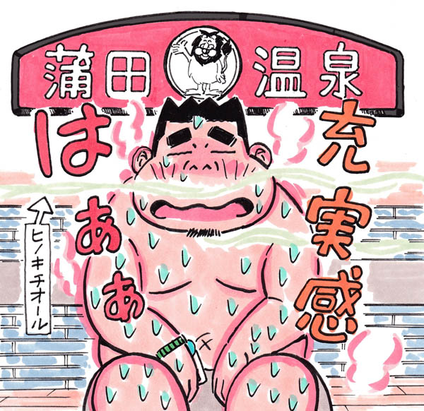 「蒲田温泉」47度の黒湯にあっぢーー! ヒノキの香りにホッ。真新しいサ室で10分3セット