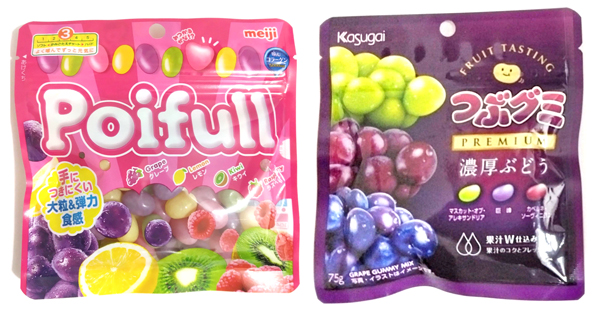 明治「ポイフル」と春日井製菓「つぶグミ」/(C)日刊ゲンダイ