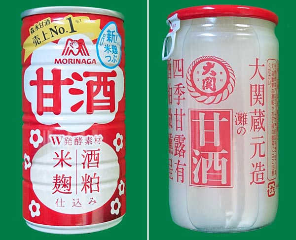 森永製菓の甘酒(左)と大関の甘酒(C)日刊ゲンダイ