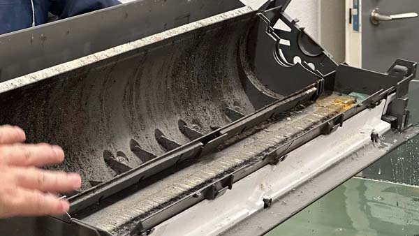 富士通ゼネラルの社員が8年間使用したモデル。裏面のクリーニングできない部分は、とても汚れていた(提供)筆者