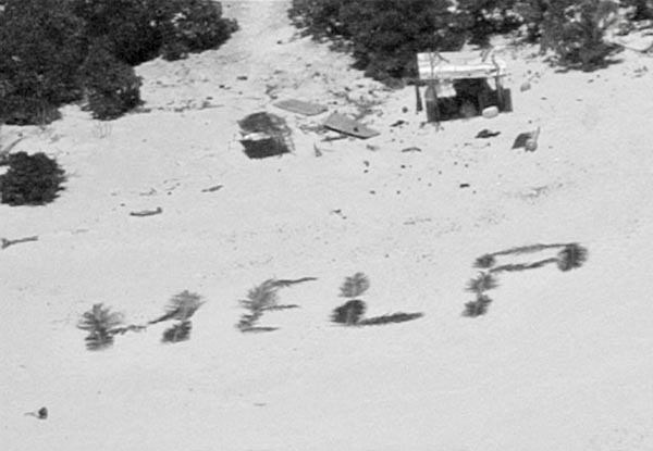 まるで映画! ミクロネシア絶海の孤島にヤシの葉の「HELP」の文字が