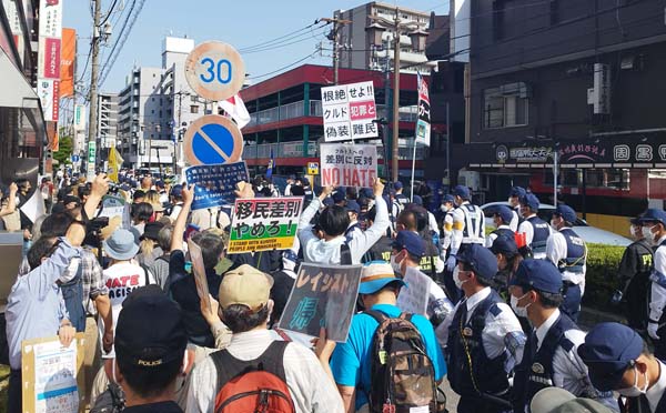 抗議活動に囲まれる蕨駅前のクルド人排斥運動デモ。しかし参加者は…(C)日刊ゲンダイ