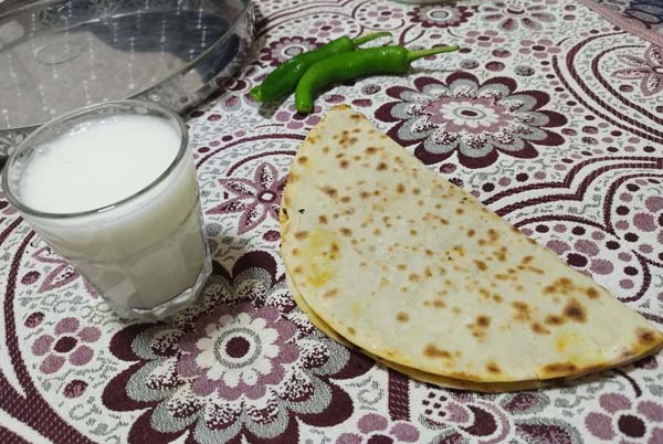 支援先の家族からふるまわれたクルド料理「ラフマージュン」とヨーグルトの飲み物(C)日刊ゲンダイ