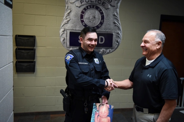 24年前に捨てられた赤ん坊がインディアナ州の警官に 自分を発見した元警官と同じ職場で感動の再会