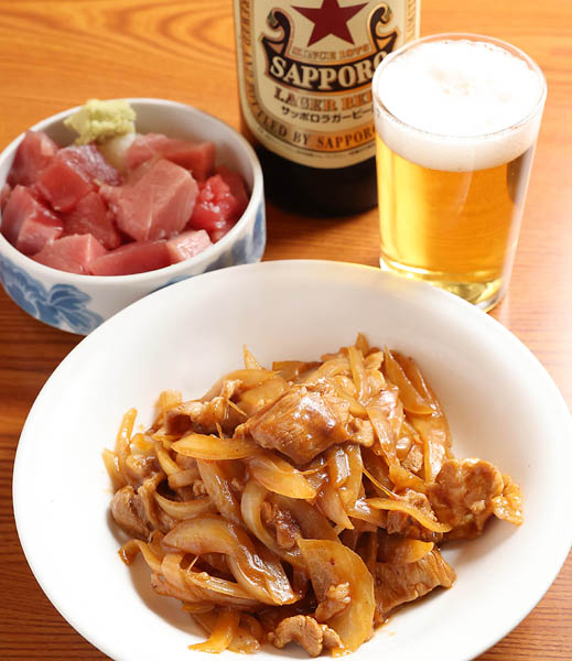 カレー風味の炒り豚と15切れもあるマグロぶつ(C)日刊ゲンダイ