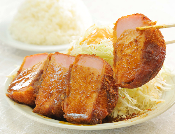 【レストランばーく】(神奈川・鶴見)巨大ハムカツは1切れ約100グラムが4枚も!