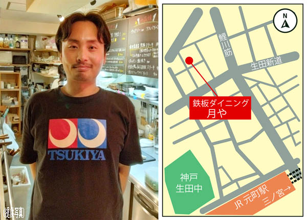 神戸元町の鉄板焼き「月や」では家族連れも神戸マダムも外国人も箸でバクバク