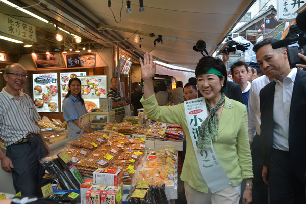 2016年都知事選、築地市場を練り歩きPR(C)日刊ゲンダイ