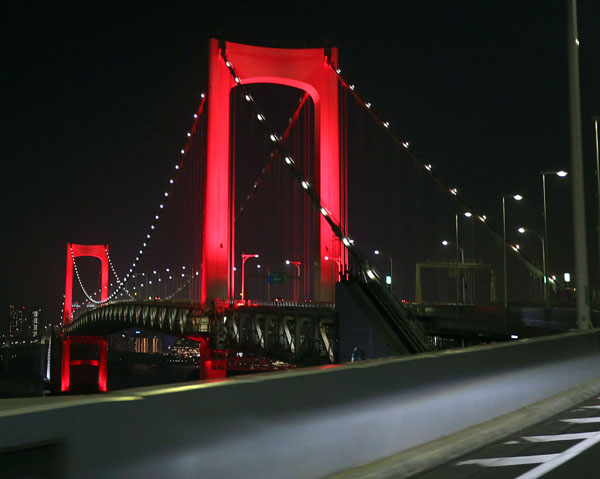 2020年コロナ感染拡大、東京アラート発令でライトアップされたレインボーブリッジ(C)日刊ゲンダイ