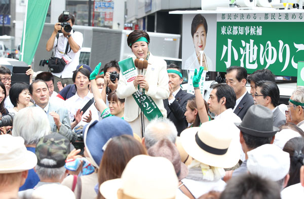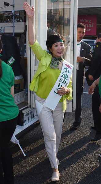 2016年都知事選、さっそうと街宣車から降り立つ小池百合子氏(C)日刊ゲンダイ