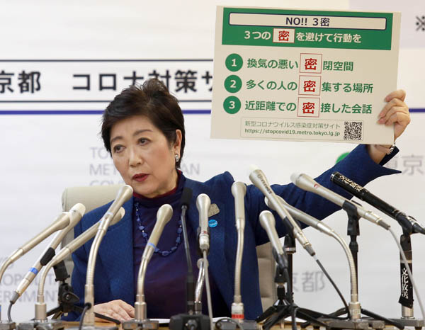 2020年3月コロナ緊急事態宣言、小池百合子都知事のフリップ芸「三つの密」/(C)日刊ゲンダイ