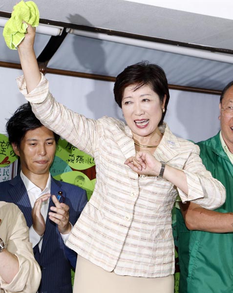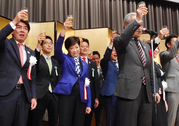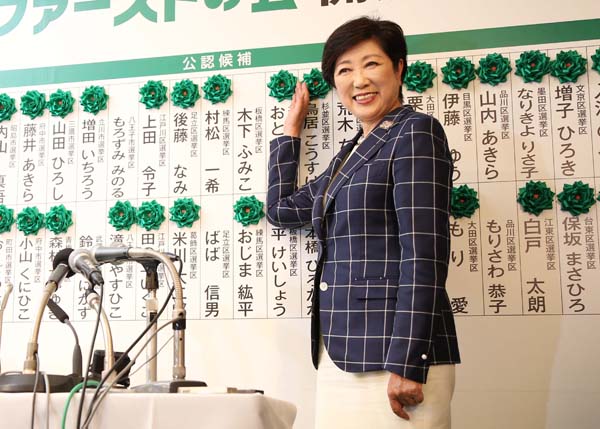 2017年都議選、小池人気で「都民ファーストの会」が大勝、笑顔の小池百合子都知事(C)日刊ゲンダイ
