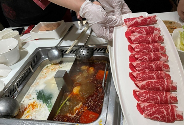 まず白湯スープをすする(海底撈火鍋池袋店)/(写真)近藤大介氏