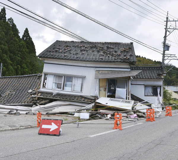 3日の地震で倒壊した輪島市の住宅(C)共同通信社