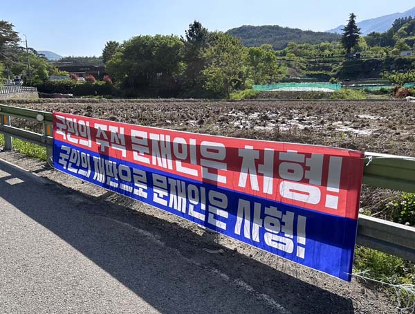 “文在寅を死刑に”などと書かれた横断幕(C)日刊ゲンダイ