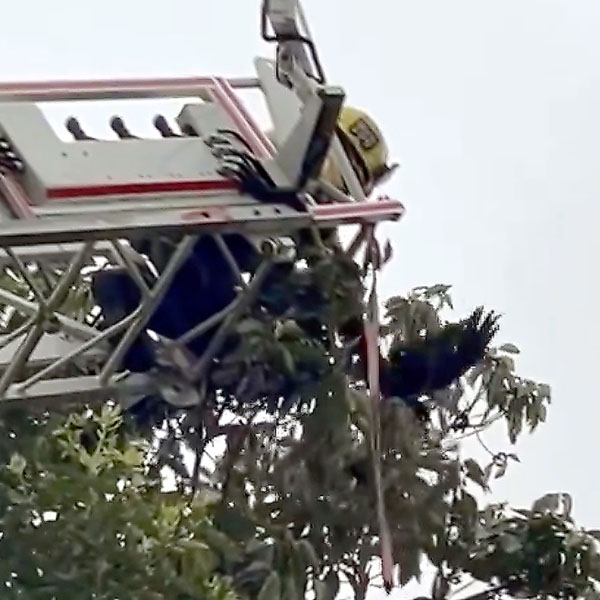木の上で苦しむカラスを救助せよ! 米カリフォルニア州で消防車まで現場に駆けつけ大騒動に