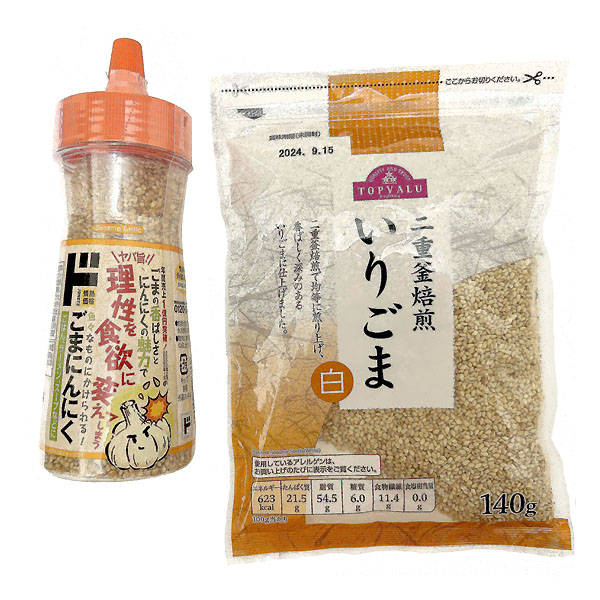 ドンキ「ごまにんにく」vsイオン「いりごま白」 PBゴマの香りやカロリーは?