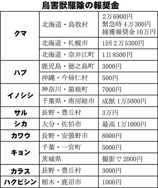 鳥害獣駆除の報奨金(C)日刊ゲンダイ