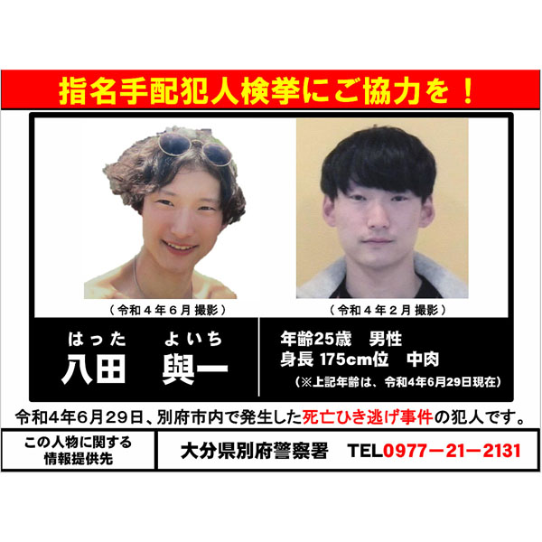 別府市ひき逃げ事件で重要指名手配の八田與一容疑者が逃亡を続ける目的は?